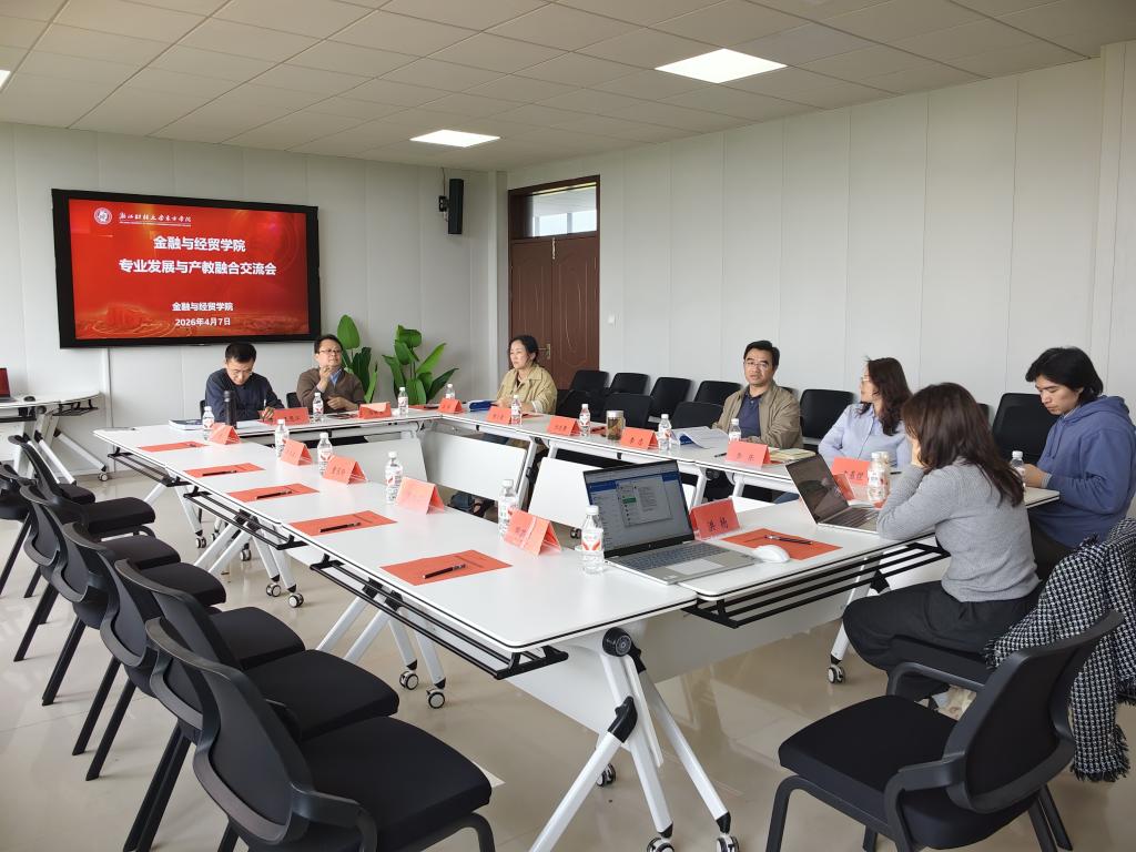 2026年4月7日下午13:10,金融与经贸学院召开专业发展与产教融合交流会暨第四次系主任会议,金融与经贸学院全体领导班子、金融与经贸学院分工会主席、全体系主任参加会议。围绕产教融合实习基地建设、专业转型升级发展、学科竞赛申报等工作进行研究部署。会议结合学院发展实际,进一步明确了近期重点任务和下一阶段推进方向。